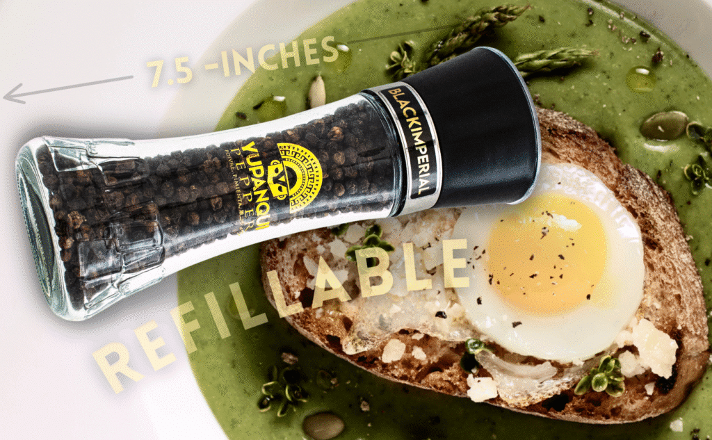 Yupanqui Black Imperial Peppercorns deliver bold aroma and classic pepper heat that elevates everyday cooking. Their vibrant flavor makes them perfect for steaks, burgers, eggs, roasted chicken, soups, and avocado toast.