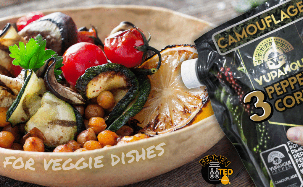 Yupanqui Camouflage Peppercorn Blend was crafted specifically for plant-forward cooking. Its layered aroma enhances roasted vegetables, grain bowls, mushrooms, tofu, and salads, making vegetable dishes rich and satisfying.